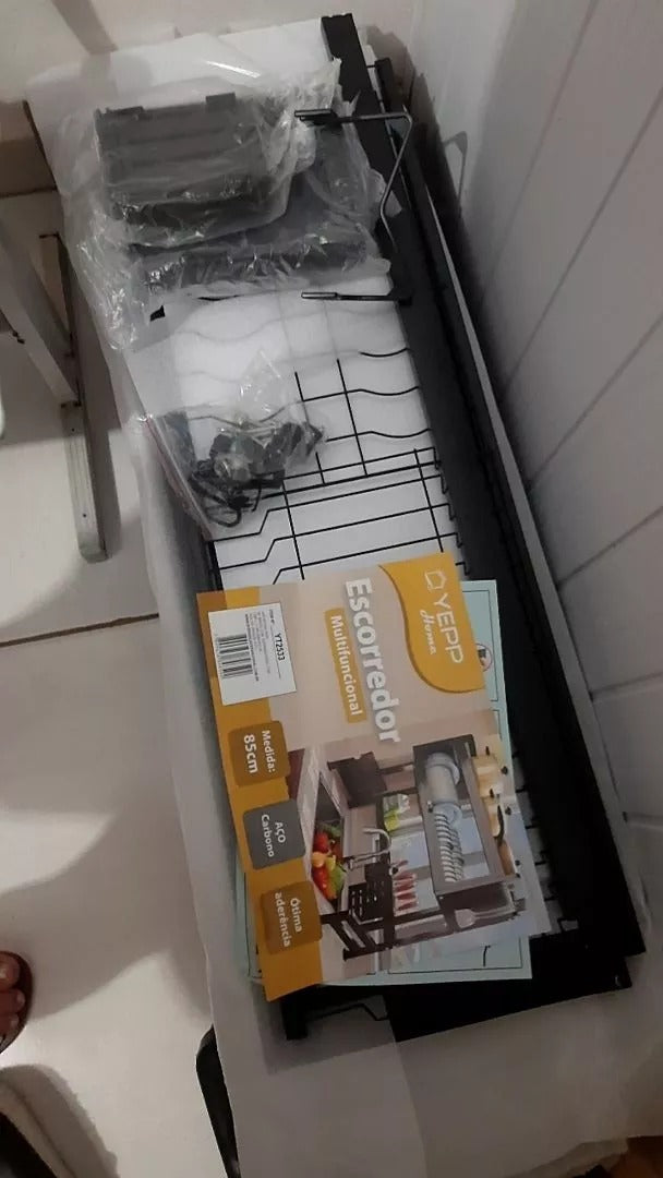 La caja viene con todas las piezas y tornillos que necesitas para armar el escurridor, y también trae un manual de instrucciones para que sea más fácil. ¡Es súper sencillo!